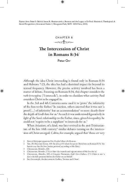 Pdf The Intercession Of Christ In Romans 8 34 Peter Orr Academia Edu