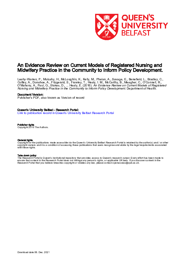 Pdf An Evidence Review On Current Models Of Registered Nursing And Midwifery Practice In The Community To Inform Policy Development Bernard Mccarthy Academia Edu