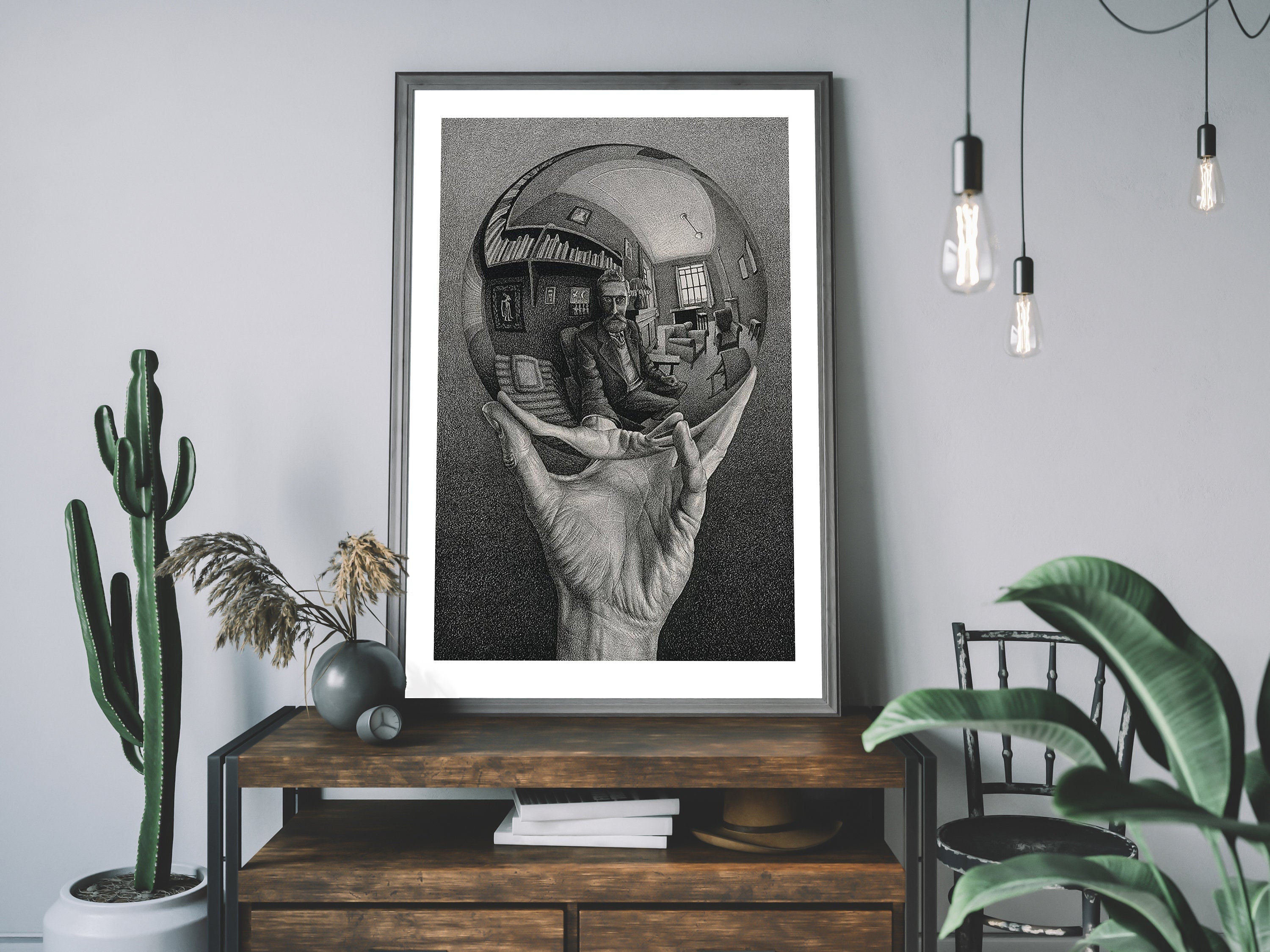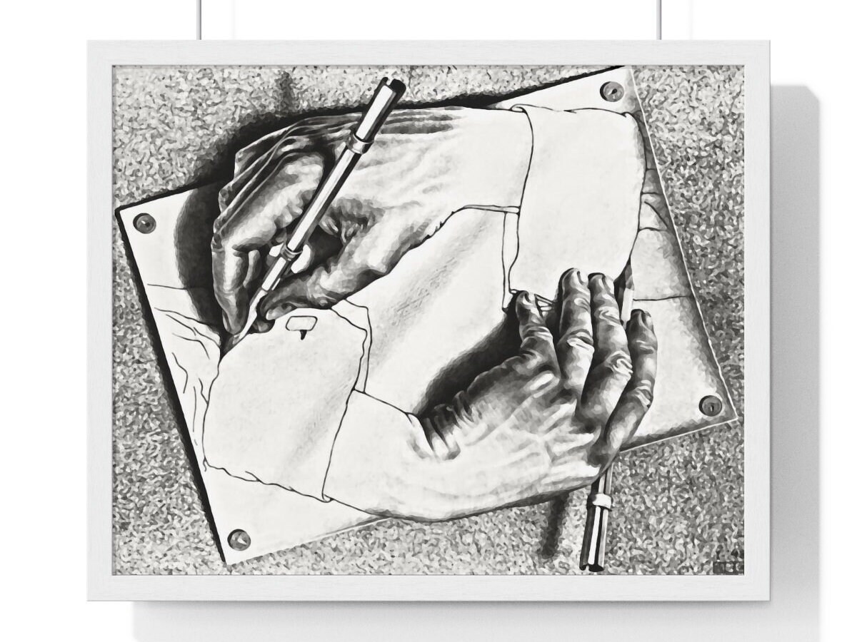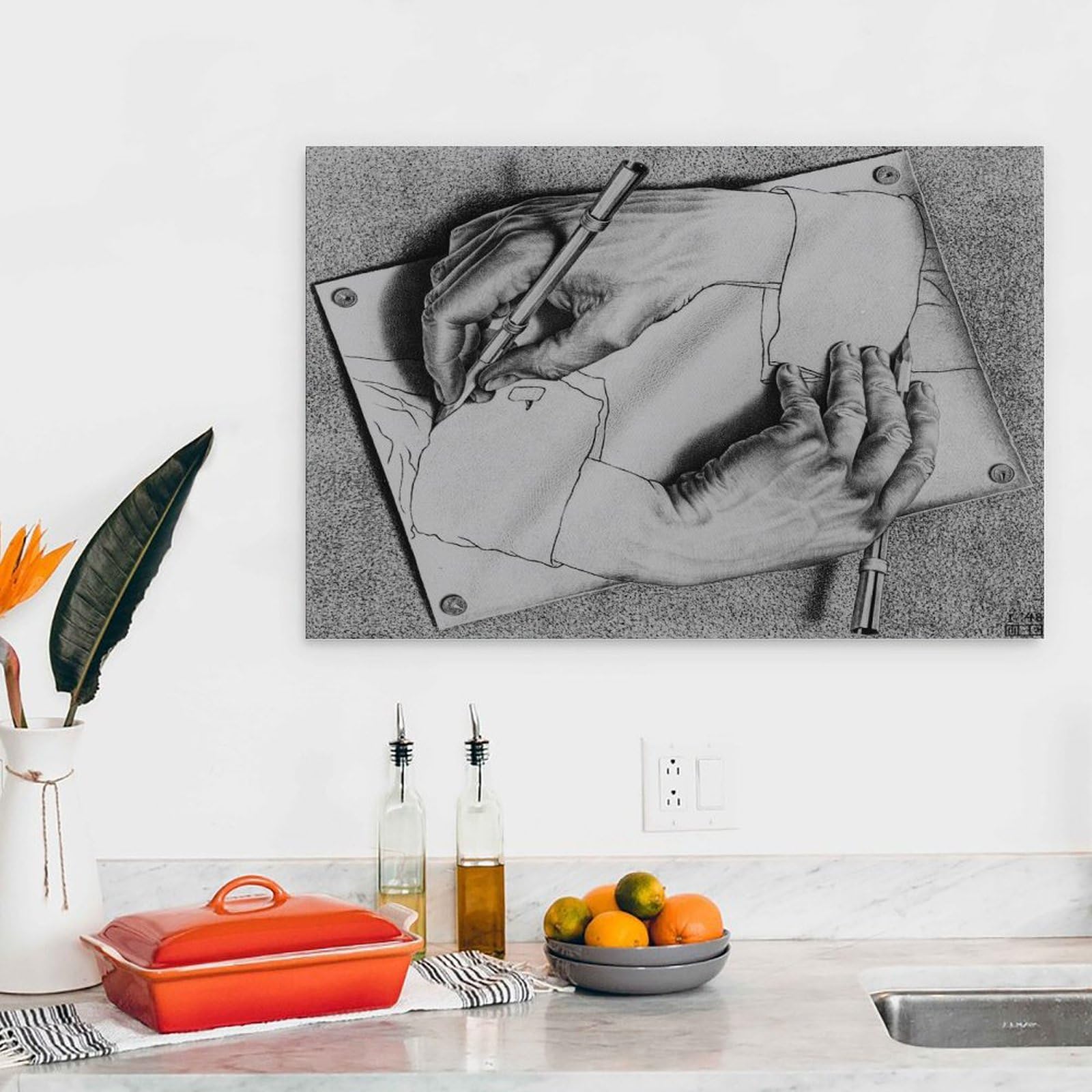 Amazon De M C Escher Painter S Work Drawing Hands Bedruckte Poster Leinwand Wandkunst Dekorativ Schlafzimmer Modernes Zuhause Kunstwerk 20 X 30 Cm